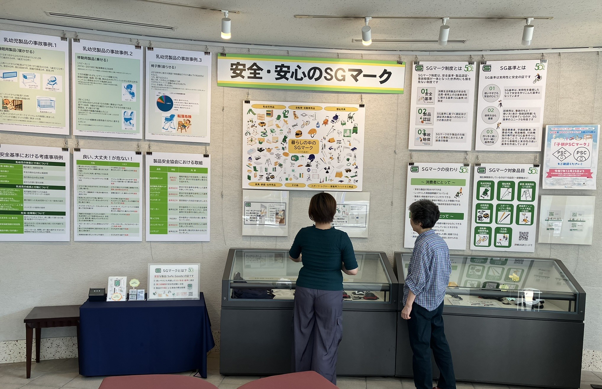 また、新しくSGマーク制度の対象となった「ベビーチェアベルト」、「転倒用保護具」の実物をご覧いただけます。