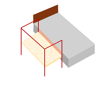 具体的には、子どものベッドの側面を下げきってもマットレスの上面から10cm以上の壁ができる構造を求めています。それにより、子どものベッドのマットレス上面を大人のベッドのマットレス上面より10cm以上低くなるようにするためです。