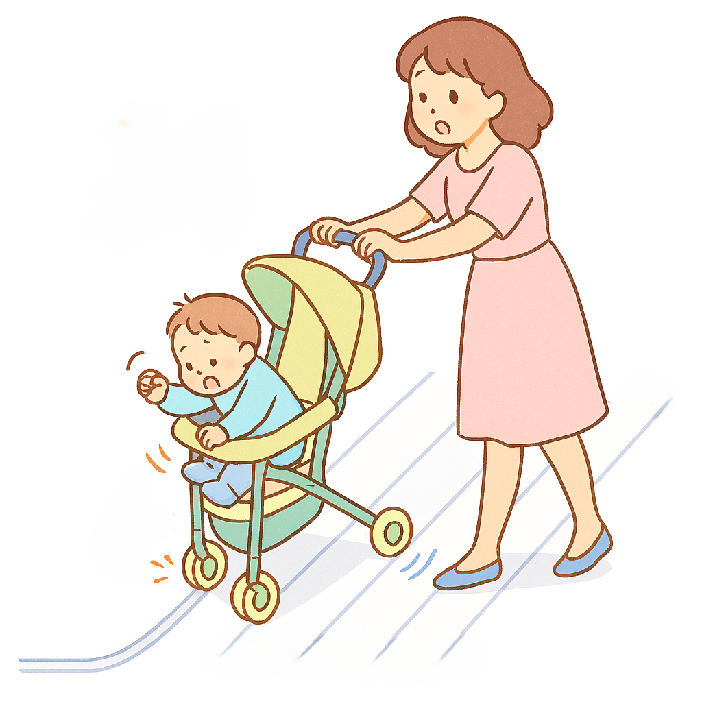 ベビーカーは、使用に伴う事故が少なくない製品のひとつです。令和元(2019)年に国民生活センターが行った調査※によれば、2014年度以降、5年間に、336件の事故が医療機器ネットワーク事業に報告されており、ベビーカーごと転落したものが104件、乳幼児が転落したものが184件でした。また、男女千人を対象としたアンケート調査では、29%が転倒・転落を経験したと答えています。加えて、内外で、乳幼児が可動部に指をはさみ指先切断などの重傷を負った事例があります。米国CPSC(2024)の報告では、ベビーカー他の搬送製品での事故件数は、年間6,600-7,000件、死亡者数は10-12人と推定されています。また、14カ月の幼児が可動部位の隙間に首を挟み窒息死するという事故も発生しています。